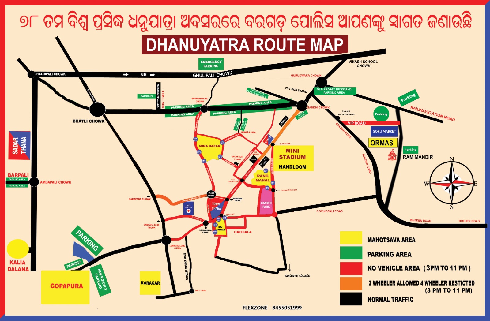 ବିଶ୍ୱର ସର୍ବବୃହତ ମୁକ୍ତାକାଶ ରଙ୍ଗମଞ୍ଚକୁ ସହଜରେ ଅନୁଭବ କରନ୍ତୁ। ବରଗଡ଼ ସହର ଏବଂ ଆମ୍ବାପାଲି ଗ୍ରାମର ମୁଖ୍ୟ ମହୋତ୍ସବ କ୍ଷେତ୍ର, ପାର୍କିଂ ସ୍ଥଳ ଏବଂ ଯାତାୟାତ ନିୟମଗୁଡ଼ିକୁ ଏଠାରେ ଦେଖନ୍ତୁ।